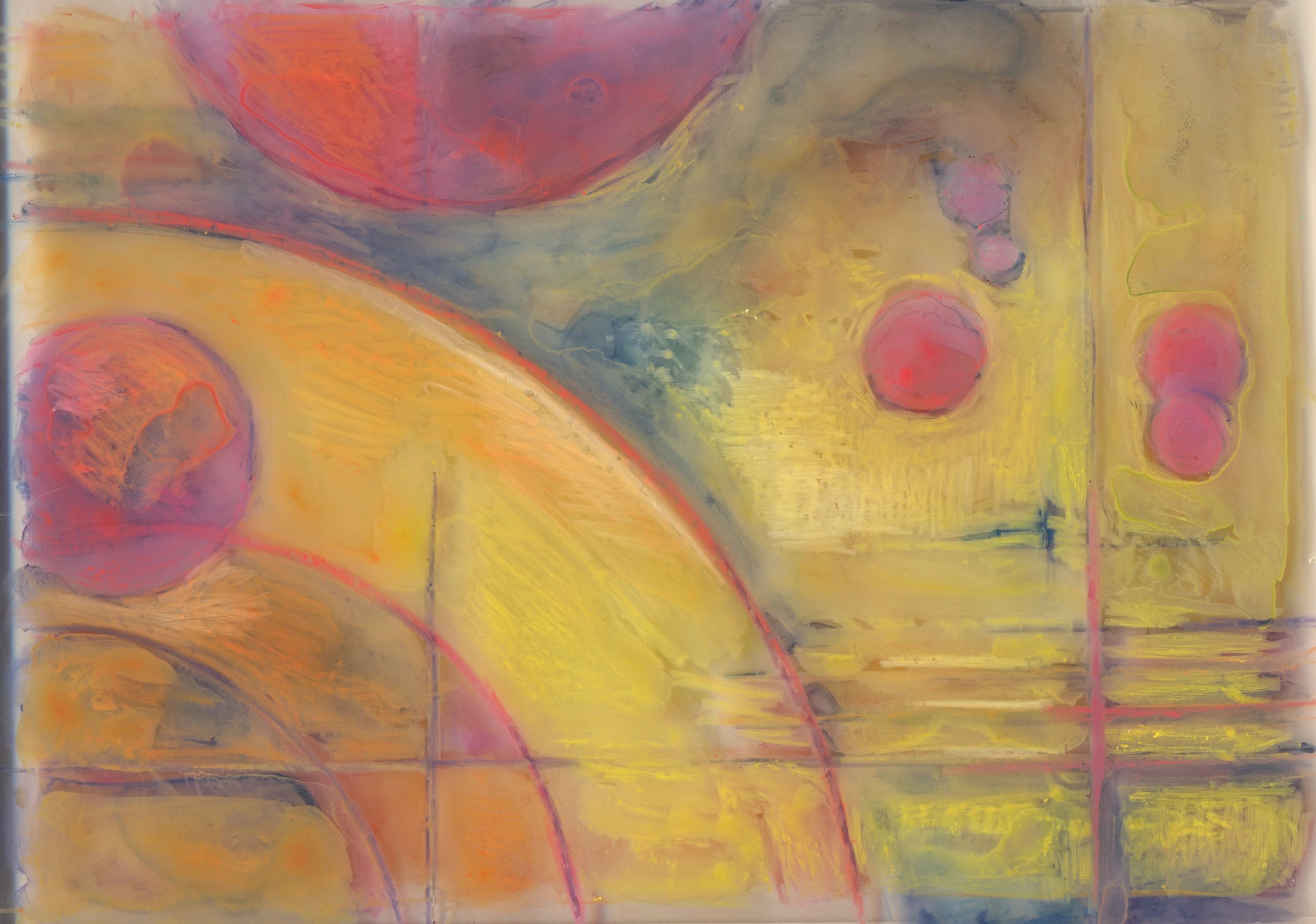 Magenta Moons (SOLD) Watercolor pastel on Plexigalss